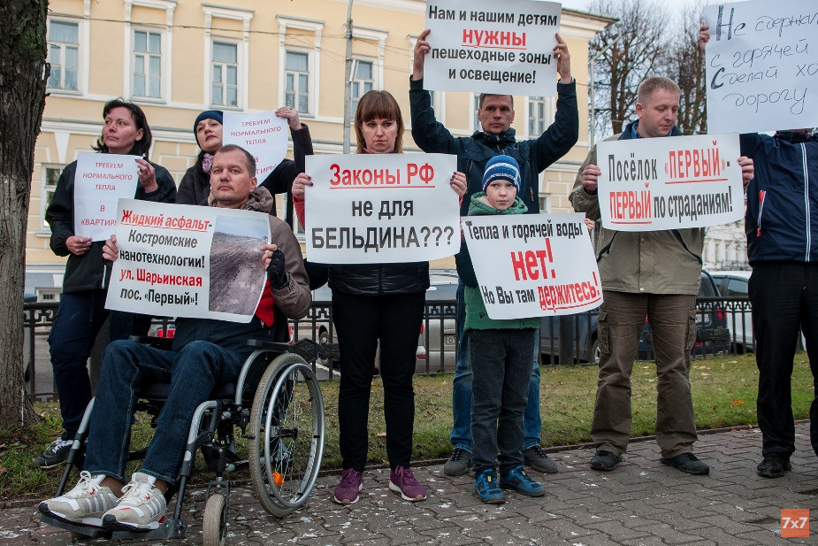В Ботниковском сквере напротив костромской мэрии 25 октября прошел согласованный пикет жителей поселка Первый, недовольных условиями проживания. Рядом с пикетчиками стояло несколько жителей того же микрорайона, утверждавших, что их все устраивает. Протестующих обвинили в раздувании проблем на пустом месте. Позиции участников пикета, их оппонентов и городских властей, к которым пикетчики адресовали свои требования, — в репортаже «7х7».