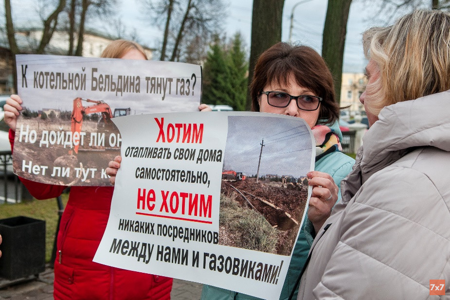 Недавний рейд городских чиновников с замером температуры в домах Ласкин назвал театральным представлением. Его недовольство разделили еще около 15 человек, пришедших на пикет.