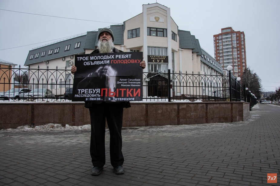 Перед началом судебного заседания экоактивист Наталья Букатова и правозащитник Юрий Вобликов встали в одиночные пикеты у здания Пензенского областного суда. Они держали в руках плакаты в поддержку фигурантов дела «Сети»* и требовали расследовать пытки в Пензе и Петербурге.