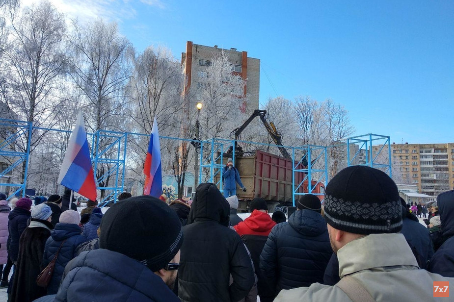 В парке 30-летия Победы в Ярославле 8 февраля прошел митинг за отставку мэра города Владимира Волкова. На протяжении первых 15 минут акции за сценой коммунальщики спиливали ветки деревьев, но шум техники не смог заглушить выступающих. Прямая трансляция с митинга опубликована на YouTube.