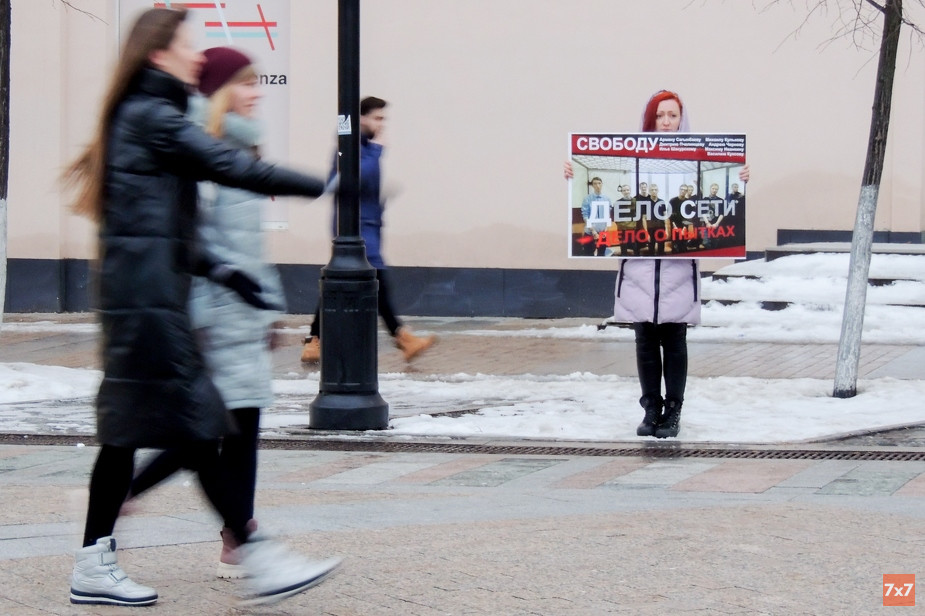 В день приговора в Пензе с утра до позднего вечера проходили акции в поддержку осужденных по делу «Сети»*. Четверых московских активистов, приезжавших в Пензу на суд, задержали на вокзале вечером 11 февраля. Полиция сняла их с поезда, доставила в отделение и отпустила спустя три часа. Все это время к ним не пускали адвокатов и правозащитников. На одного из них — Сергея Запольнова — составили протокол за надпись на стене: «Не простим дело „Сети“*». Вечером 12 февраля сотрудники полиции перед посадкой в вагон пытались вручить ему извещение о заседании мирового суда, адвокаты не дали этого сделать. 13 февраля судья Мирового суда Железнодорожного района Пензы Ирина Маркина передала рассмотрение дела в Москву — по месту жительства Сергея Запольнова.