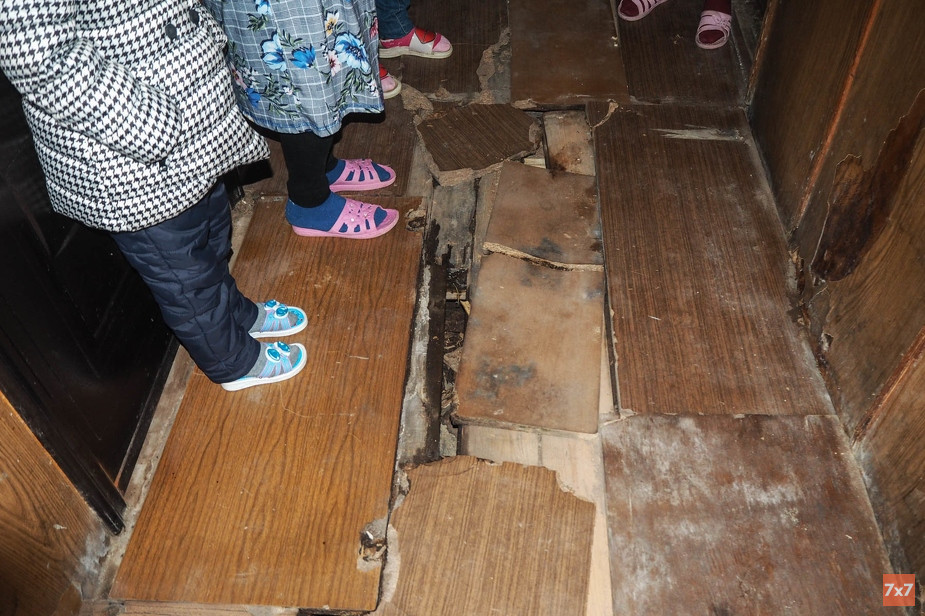 — В городе нет ни одного чиновника, ни одного ведомства, в котором не знали бы об аварийном, опасном состоянии нашего дома. О том, что гнилые трубы, полы, заплесневелые стены, что аварийная электропроводка. Что прямо под полом скапливаются канализационные воды и жильцы первого этажа могут провалиться вниз, а на жильцов второго сверху может обвалиться крыша, — рассказала «7х7» Мария Копьева — мама троих детей, ожидающая четвертого. В сентябре 2019 года она осталась одна с детьми на руках: в автомобильной аварии погиб муж, после похорон поняла, что беременна.