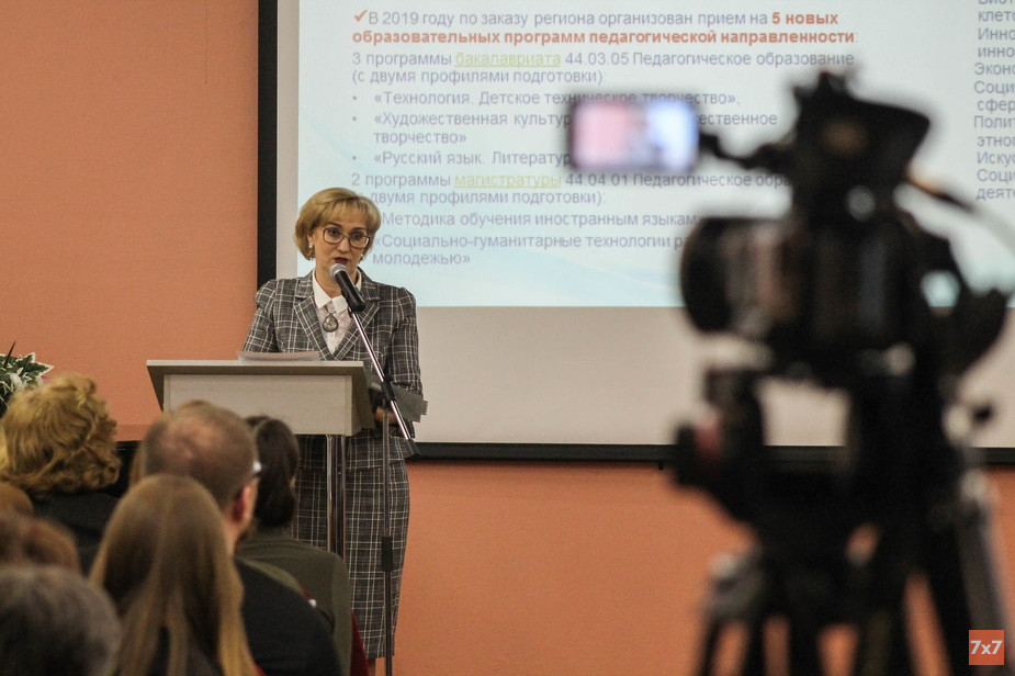 После Васильева выступила исполняющая обязанности ректора Ольга Сотникова.