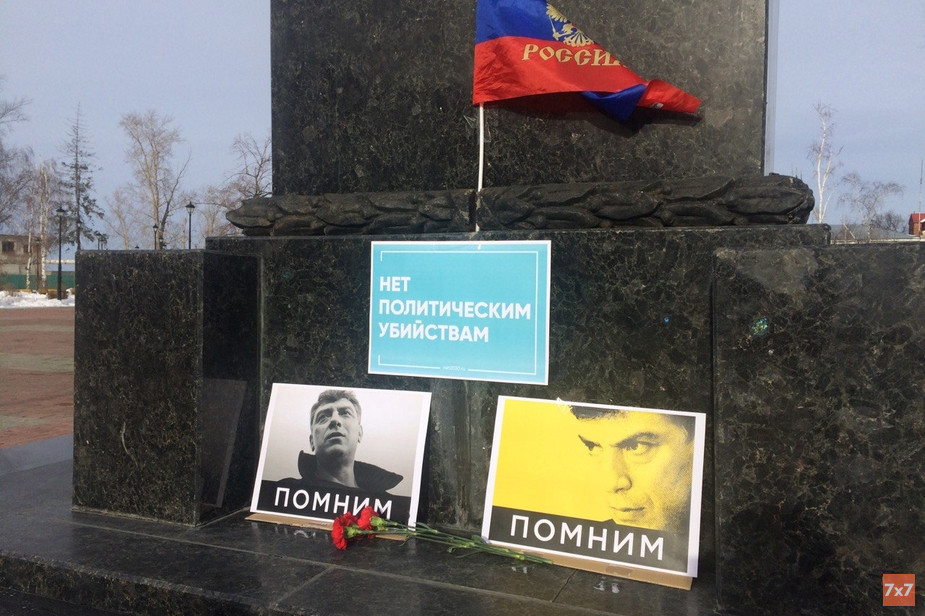 Согласованный пикет в память убитого неподалеку от Кремля политика Бориса Немцова прошел на площади Ленина с 11:00 до 12:00. На акцию памяти пришли общественники, которые разделяли его взгляды при жизни политика и встречались с ним во время визита в Рязань в октябре 2010 года. Участники принесли самодельные плакаты с надписями: «Борись!», «Путин = война», «Герои не умирают», «Нет поправкам в Конституцию, нет узурпации власти Путиным!». «Не надо менять Конституцию — менять надо Путина!».