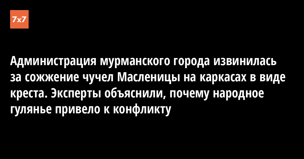 В городе Апатиты Мурманской области 1 марта проходили масленичные гулянья. На празднике сожгли четырех чучел, которые были размещены на каркасах в виде креста. Спустя два дня администрация извинилась за использование такой конструкции, опасаясь жалоб на оскорбление чувств верующих. Мурманский фольклорист объясняет, можно ли интерпретировать сожжение чучела на Масленицу как языческую традицию и является ли она оскорбительной для христиан.