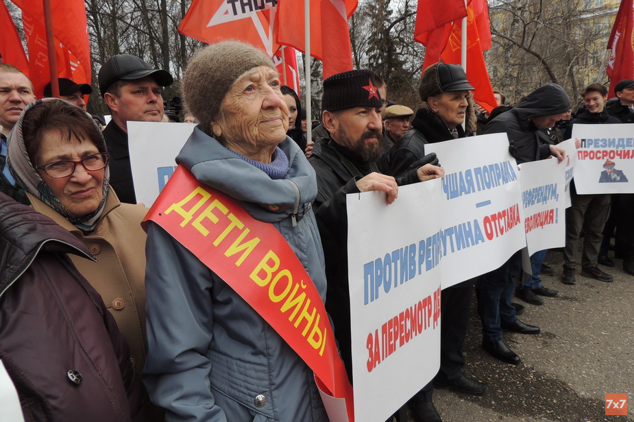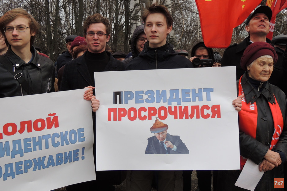 Люди вышли с плакатами «Президент просрочился!», «Лучшая поправка – Путина отставка!», «Долой президентское самодержавие!», «Узурпация власти недопустима! Путин должен уйти!», «Путин – новый царь?», «Хватит менять шило на мыло!», «Или референдум, или революция!», «Обнуление сроков – государственный переворот!»