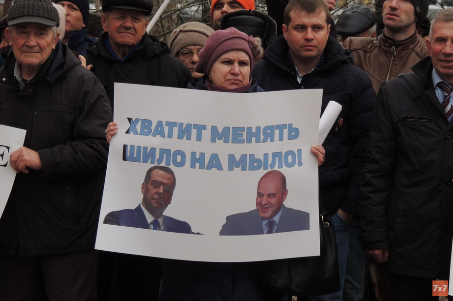 На митинге участники высказывали претензии к работе Правительства Российской Федерации. По словам коммуниста Руслана Бахтеева, смена Дмитрия Медведева на Михаила Мишустина ничего не даст.