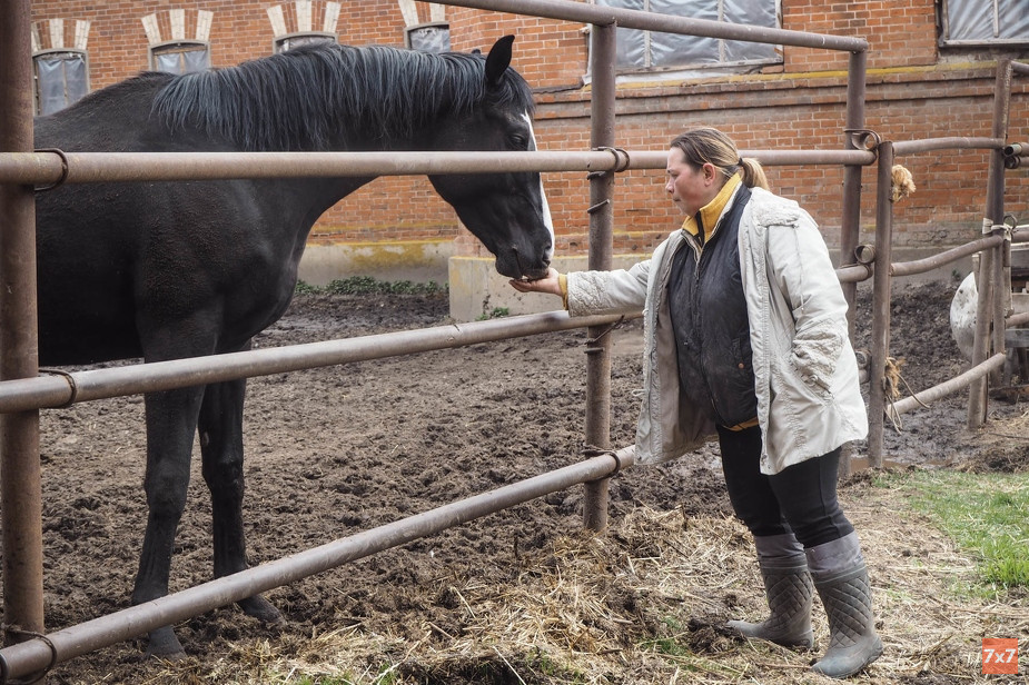 «Скоба» стоит чуть в стороне от тропинки, по которой за день прошли с десяток местных жителей. Они делились воспоминаниями, связанными с «конезаводом советских времен», и сожалели, что здоровье не позволяет присоединиться к волонтерам. Бывший начальник конной части Владимир Фролов услышал звук бензопил и пошел узнать, что происходит. Несколько десятилетий он восстанавливал русскую верховую породу лошадей, попутно борясь за сохранение зданий. В первом деле преуспел, во втором — не очень. Сейчас Фролову чуть за 70. Местные говорят: