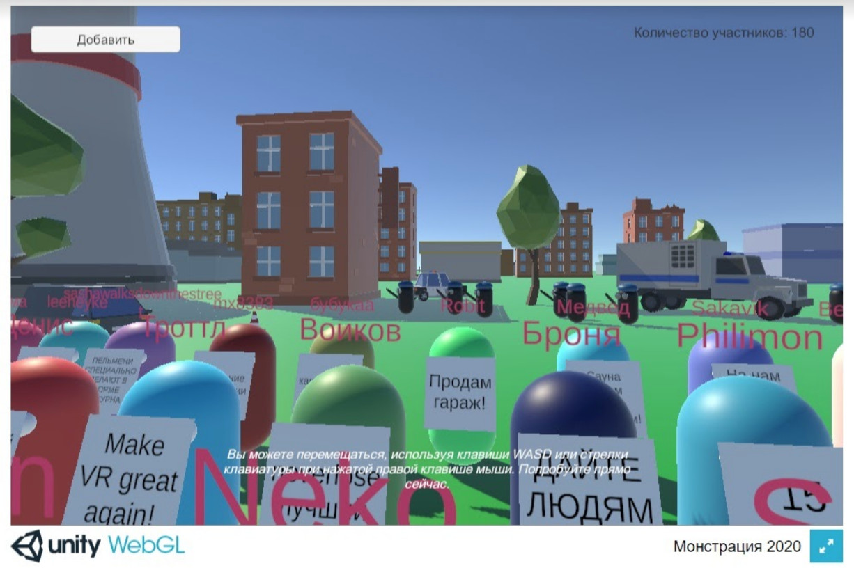 Анджей Емельянов из Новосибирска создал виртуальную платформу для «монстрантов». Проект назван «Онлайнстрация». «Все как в жизни, — написал он в своем Instagram, — можно добавить себя к числу монстрантов со своим лозунгом, а также попасть в автозак, бросив в полицейского пластиковый стаканчик». В игру можно добавлять свои плакаты и пробовать освобождать задержанных. По состоянию на 17:00 в игре принимали участие почти 200 «монстрантов».