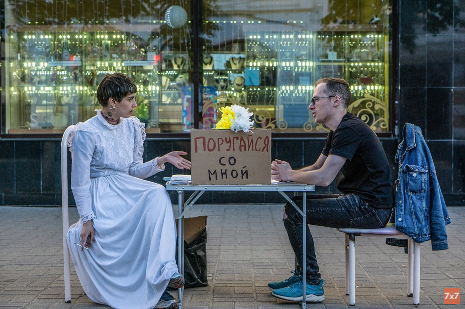 Московская психоактивистка и художница Катрин Ненашева провела в Ярославле перформанс «Поругайся со мной», смысл которого в том, чтобы помочь людям преодолеть конфликтные ситуации. Ранее Ненашева провела серию таких акций во дворах и парках Санкт-Петербурга. В Ярославле участниками перформанса на центральной пешеходной улице Кирова стали две девушки и ЛГБТ-активист. По итогам серии акций художница планирует издать книгу историй.
