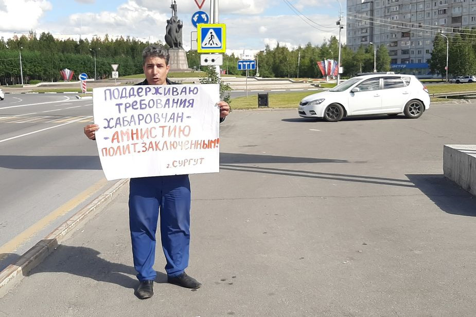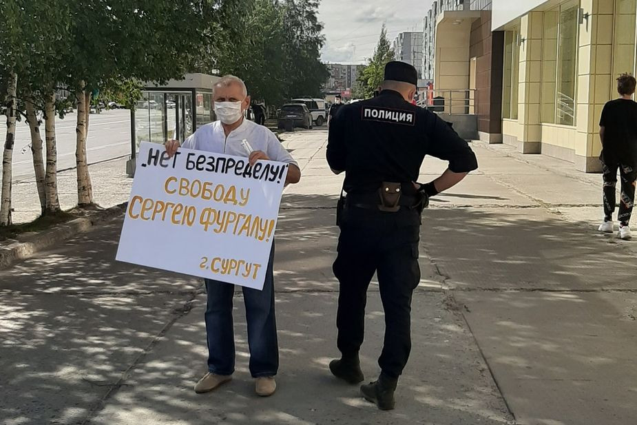 Одиночные пикеты в поддержку протестующих в Хабаровске прошли 25 июля в Сургуте. Там 15 человек стояли в разных частях города с плакатами «Хабаровск, Сургут с тобой!», «Хабаровск за перемены! Держитесь, мы с вами!», «Нет правовому произволу, долой беспредел власти!», «Свободу Сергею Фургалу!». По словам местного активиста Вадима Абдуррахманова, двух участников пикетов — пенсионеров Юрия Щербакова и Павла Тиунова — после акции задержала полиция. Их отвезли в отдел, где пообещали составить протоколы за нарушение режима самоизоляции.