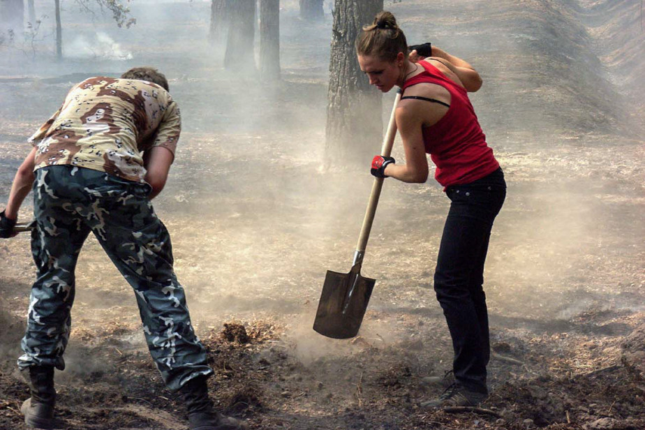 Мы стояли и наблюдали. Полыхало сильно, а машин не хватало, воды не хватало, людей тоже. Когда пожарные сбили верховой пожар, мы попросили все-таки дать нам какую-нибудь работу. И они, видимо, смирились с тем, что мы не уедем. У кого были бензопилы, тех поставили спиливать тлеющие деревья, которые могли заново разгореться. Тех, кто, как и я, взял из дома лопату, отправили окапывать лес. Так мы проработали до утра, пока нас не сменили какие-то курсанты.