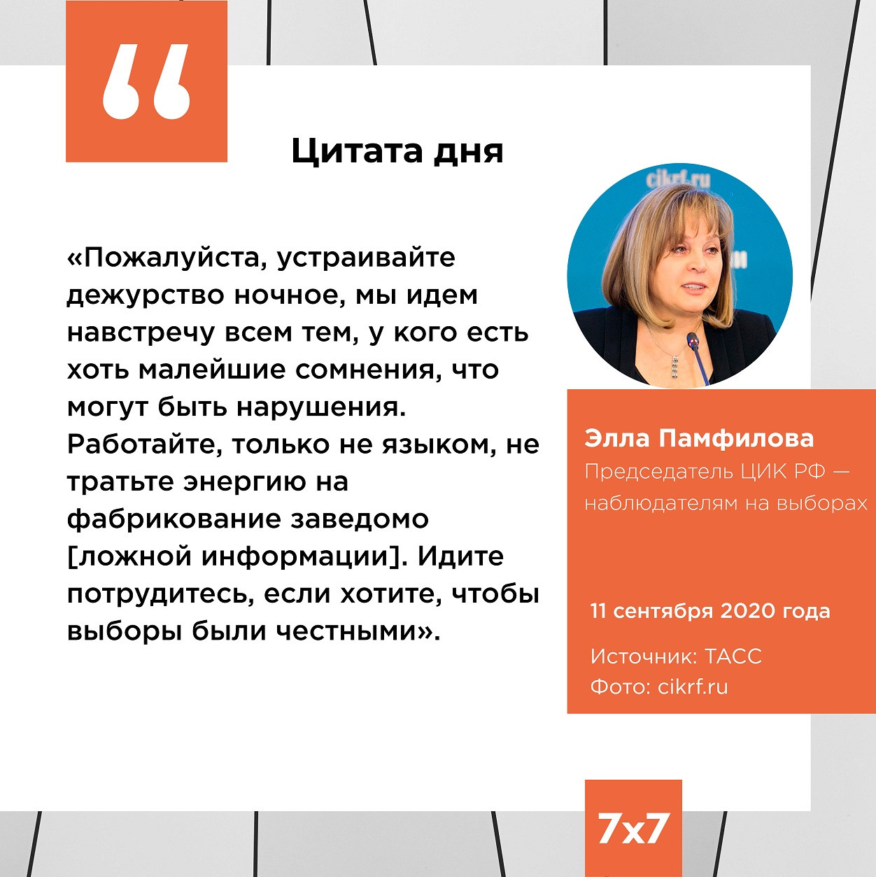 9:16 Доброе утро! Сегодня - последний день трехдневного голосования на региональных и муниципальных выборах 2020 года. За два дня мы увидели голосование на пеньках (и даже выборы короля народа сето, которые нам показал Псковский облизбирком, - тоже на пеньках), голосование в микроавтобусе, голосование во дворе с концертом, призывы к избирательным комиссиям все-таки начать работу и призывы к наблюдателям "потрудиться", чтобы выборы были честными, от главы Центризбиркома Эллы Памфиловой.