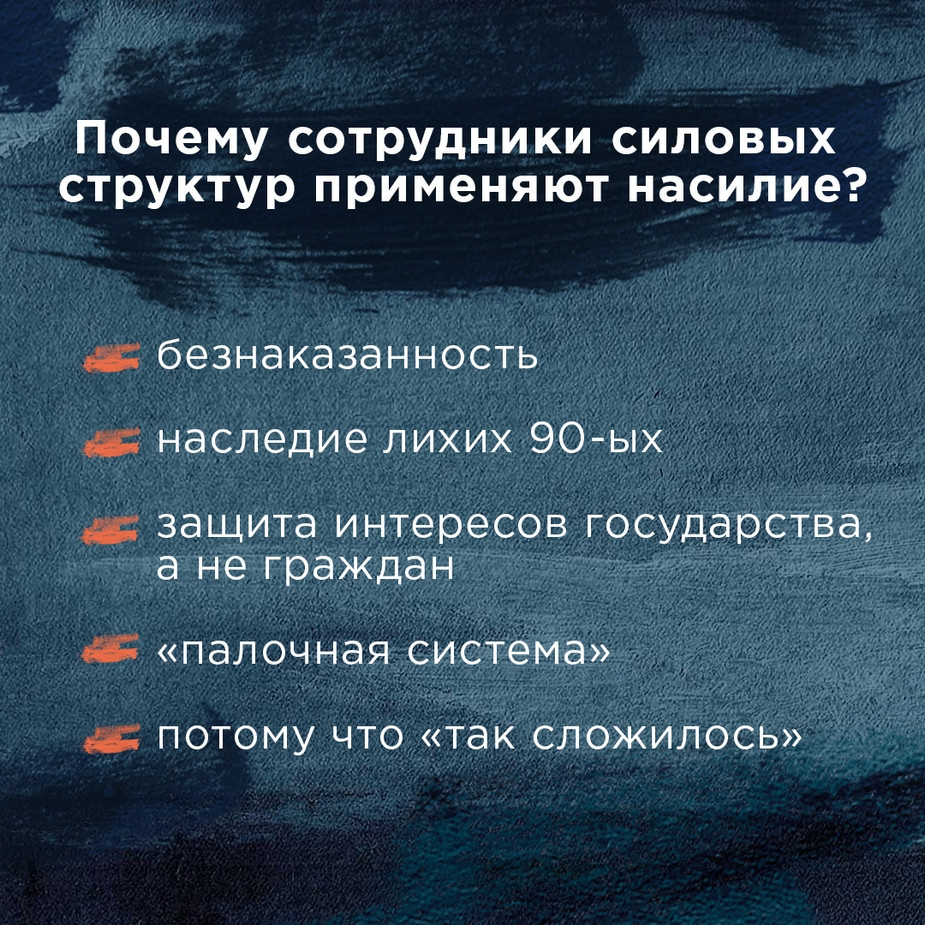 — Есть вполне сложившаяся позиция и у правоохранительных органов, и в обществе: не надо церемониться с преступником. И полутонов тут нет, методы работы слепо тиражируются. Среди погибших есть люди, совершившие убийство, и люди, задержанные за пьянство. Есть те, кто торговал наркотиками, и те, кто матерился в общественном месте. Есть люди, чье преступление доказано приговорами, а есть только предполагаемые преступники.