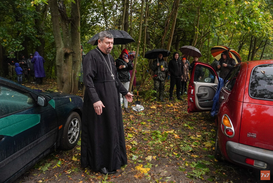 Воскресник ostpreussen_fans на руинах кирхи Святой Барбары в поселке Храброво. Иерей Василий Решетов приглашает волонтеров на обед. Фото Юлии Власовой