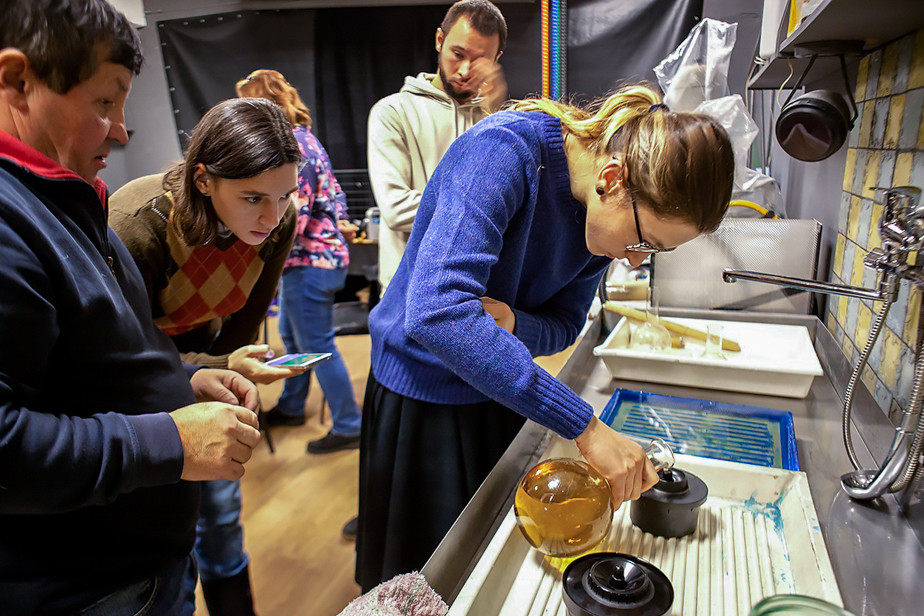 Мастерская на 30 квадратных метров открылась при фотошколе этой осенью. Это творческое объединение людей, увлеченных альтернативными видами фотографии и декоративным творчеством.