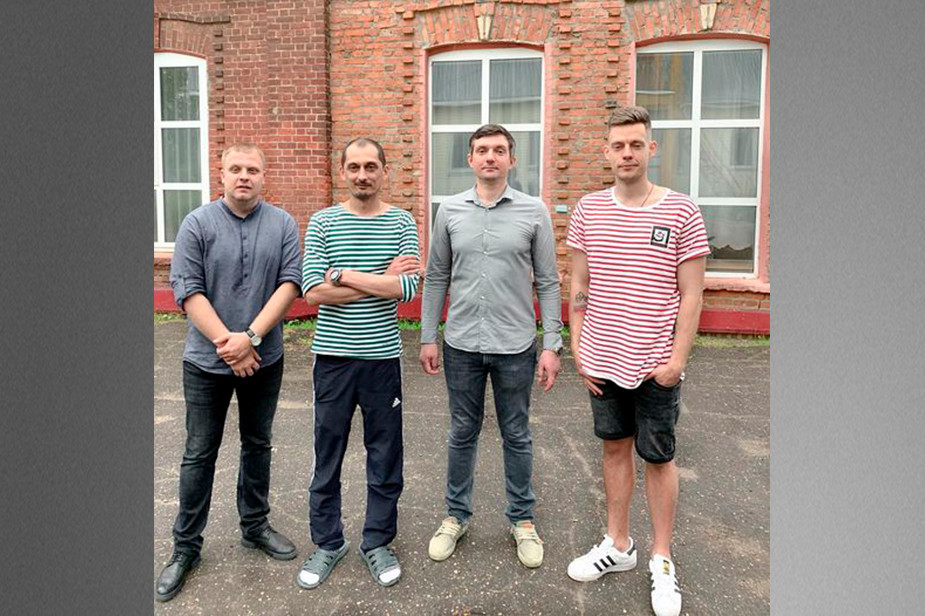 Юрий Дудь (справа), Андрей Котяшкин (второй справа) на съемках программы про российскую глубинку