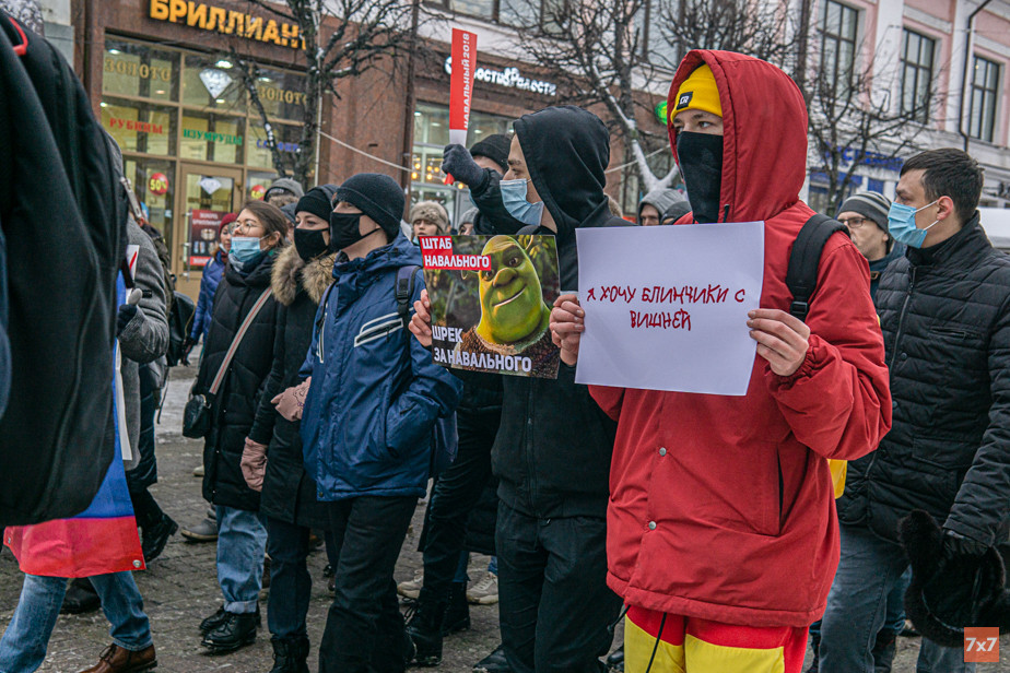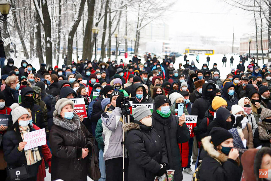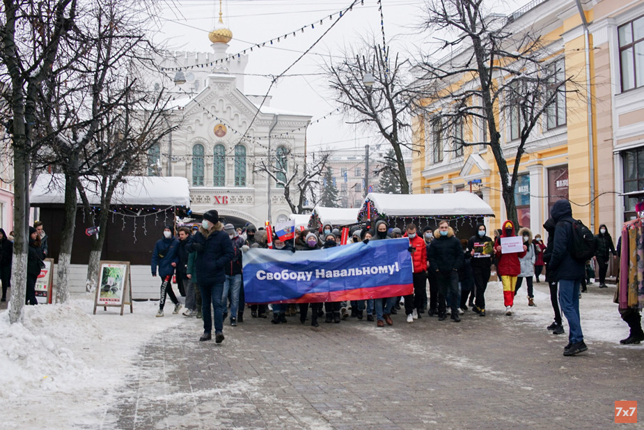 Протестующие собрались у городской администрации и прошли к Театральной площади, скандируя «Долой Путина!», «Россия будет свободной», «Свободу Навальному». На площади собралось более 500 человек (некоторые активисты оценивают число протестующих в тысячу человек). Позже толпа перешла к зданию правительства. Все это время за горожанами следовали полицейские. У здания правительства толпа начала постепенно расходиться. Как сообщает корреспондент «7x7», на акцию пришло много молодых людей и родителей с детьми.