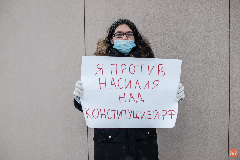 17:29 В Кирове завершилась акция в поддержку Алексея Навального. Одна из активисток Татьяна вышла с плакатом «Я против насилия над конституцией РФ» к зданию администрации, сторонясь основной толпы, чтобы провести одиночный пикет. Девушка сообщила, корреспонденту «7x7», что возмущена «происходящим в стране беспределом».
