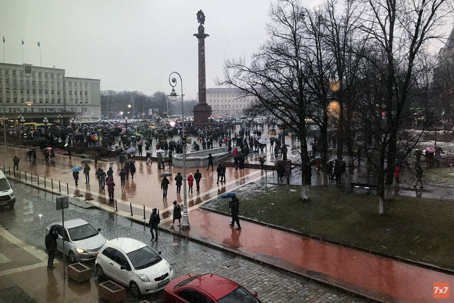 16:30 В Калининграде более трех тысяч человек пришли на площадь. Несмотря на проливной дождь, тут продолжается акция. Люди скандируют, «Свободу Навальному», «20 лет - доверия нет». Машут флагами и ершиками. Полиция наблюдает, предупреждает в громкоговорители, но никого не задерживает. Пока все мирно.