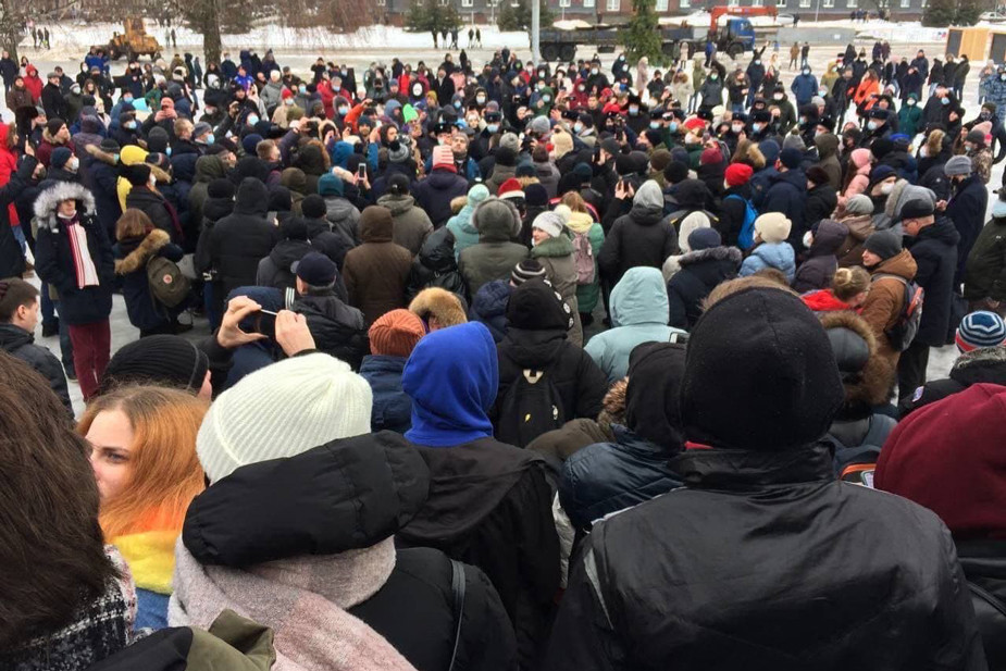 Издание «Тайга.инфо» сообщает, что в Иркутске протестующие окружили здание областной администрации. В Новосибирске на акцию вышли около 4 тыс. жителей. Это самый массовый митинг со времен протестов против повышения тарифов. Фото: «Тайга.инфо», Марии Бухтеевой, Валерия Федоренко («Новая газета»), Telegram-канал штаба Навального в Мурманске.