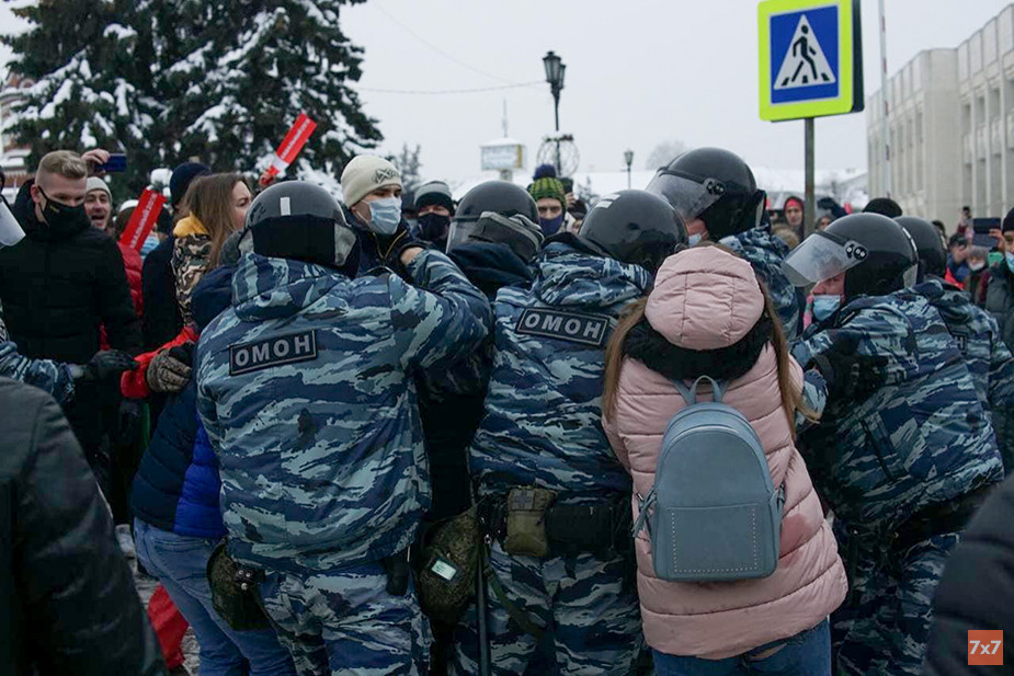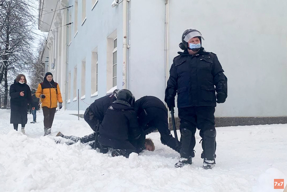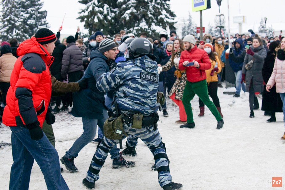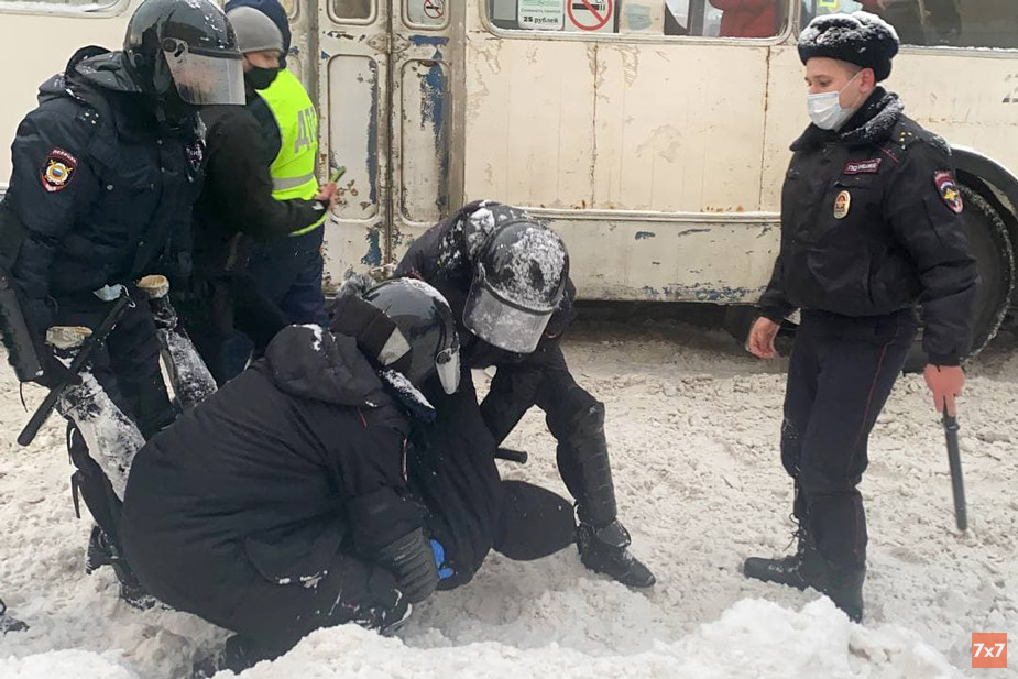 16:05 В Пензе люди переместились на улицу Кирова, акция продолжается, машины сигналят в знак поддержки. Сотрудники ОМОН грубо выдавливают людей от здания правительства через сугробы и кусты, многих жестко задерживают. Некоторым протестующим, правда, дают перед задержанием надеть потерянную в сугробах обувь. На тротуарах давка.