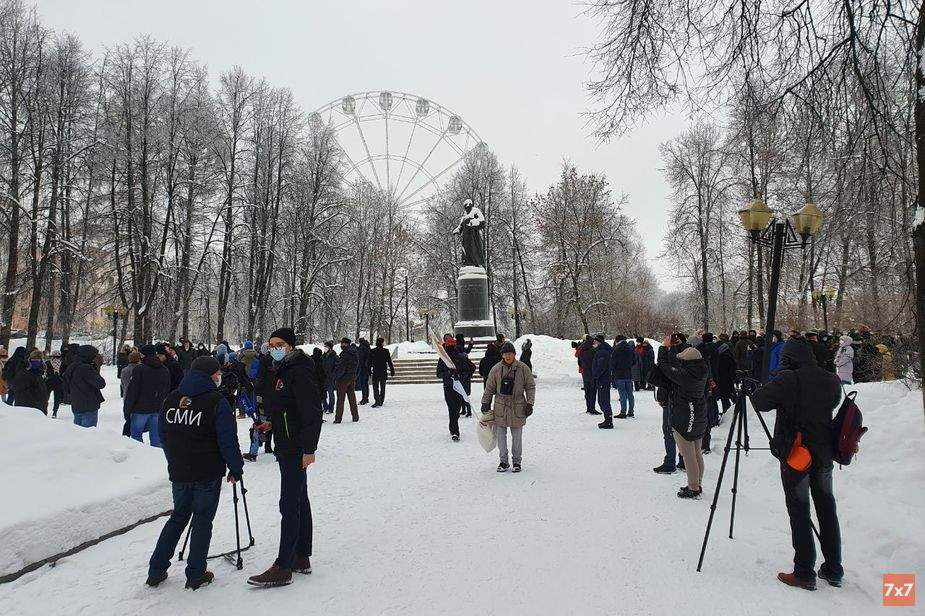 12:05 В Иванове люди начинают собираться на акцию в поддержку Навального у памятника Фрунзе, сообщает корреспондент «7x7». Фото: Наталья Мухина, «7x7».
