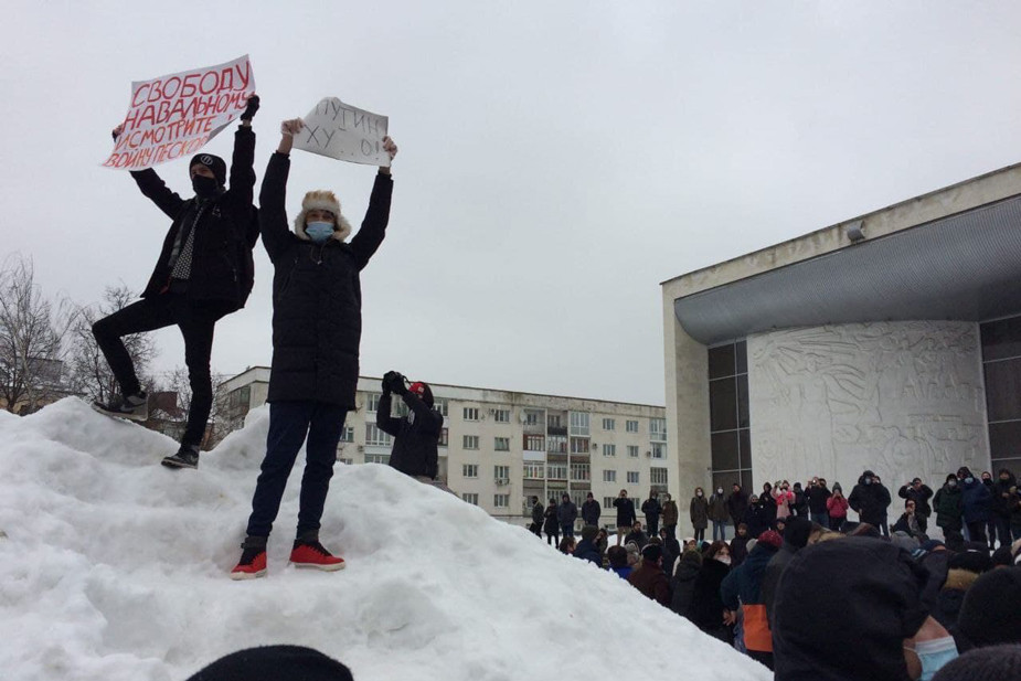 13:02 В Ульяновске у центрального универмага проходит несанкционированный митинг. Около сотни собравшихся говорят, что хотят высказать свою позицию под лозунгом «Свобода Навального, свобода России». Начались первые задержания. Людей становится все больше.