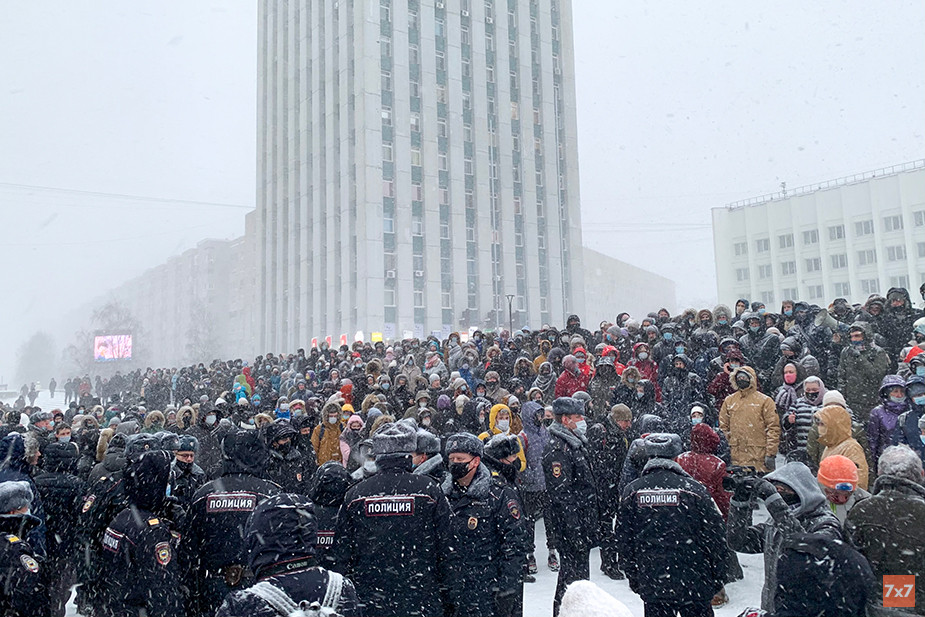 12:57 В Нижневартовске сегодня 43 градуса мороза. Но несмотря на это, люди вышли на площадь. Корреспондент «7x7» передает, что протестующих немного, рядом с площадью дежурит полиция.