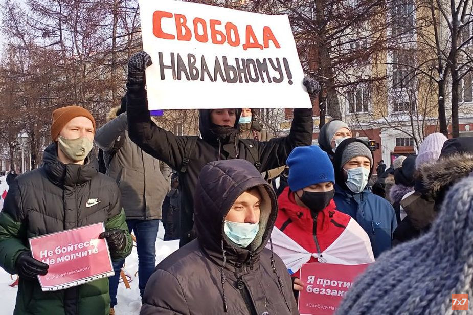 10:43 (14:43 - время в Кемерове) Жители Кемерова вышли на акцию в поддержку Алексея Навального на Аллею славы. Одного из участников с плакатом «Свободу Навальному» задержали полицейские, плакат сложили на глазах пикетирующих, сообщил корреспондент «7х7» с места событий. Фото: Андрей Новашов, «7х7».