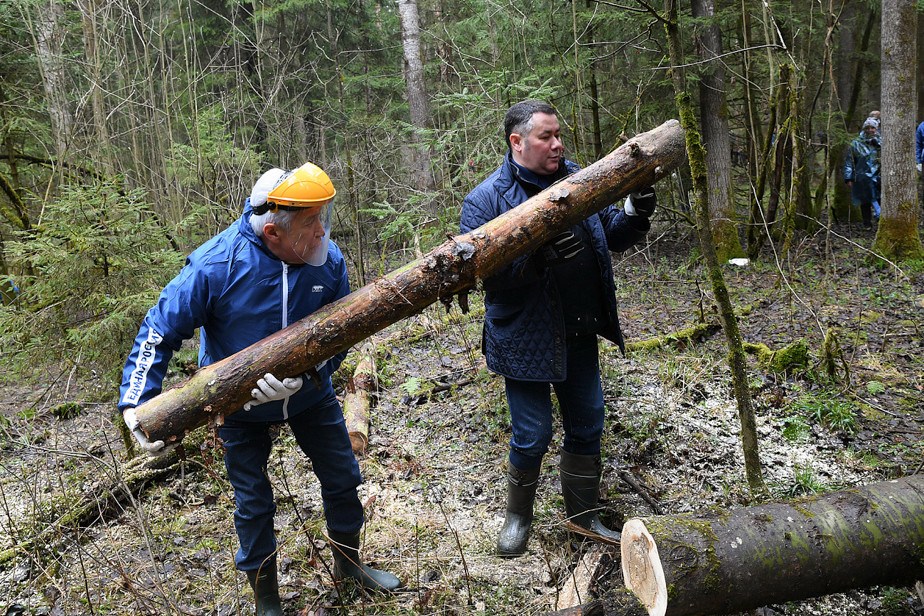 Губернатор Вологодской области Олег Кувшинников на своей странице в соцсети «ВКонтакте» упомянул, что прибираться на субботнике помогают члены партии «Единая Россия». Соответствующий тег вставлен в пост. Бревно глава региона переносил вместе с председателем вологодского заксобрания Андреем Луценко.