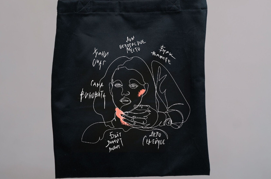 Шопперы — универсальный предмет. С одной стороны, это просто экосумка для покупок, а с другой — полметра ткани, на которой можно разместить все, что хочется, в том числе выразить свою позицию. Можно использовать сумку как инструмент просвещения. Магазин Protestore совместно с Matters.studio выпускает шопперы, толстовки и футболки с надписями о домашнем насилии. 5% от прибыли магазин направляет в правозащитные организации.