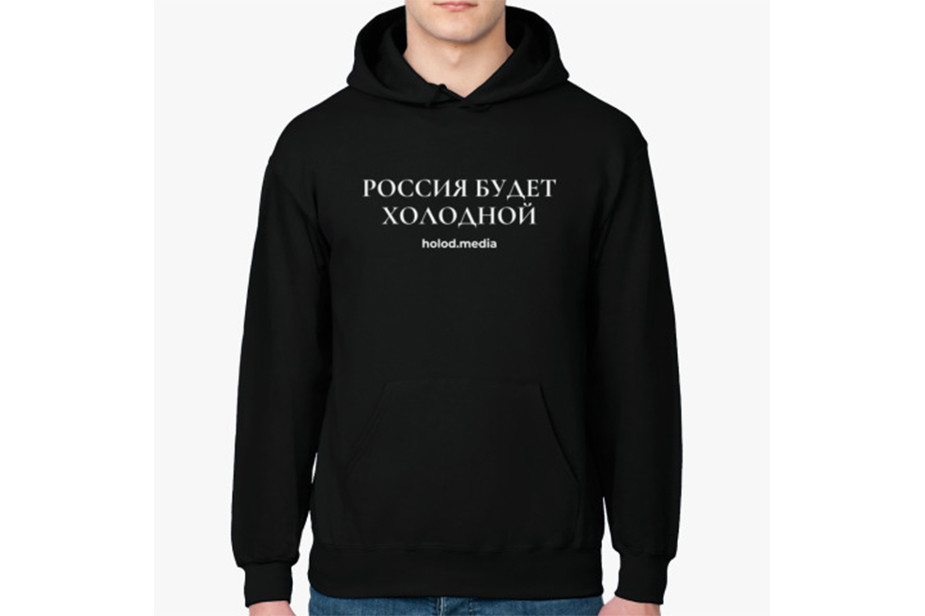 Чтобы поддержать работу независимой редакции, читатель может приобрести футболку или худи с надписью «Россия будет холодной».