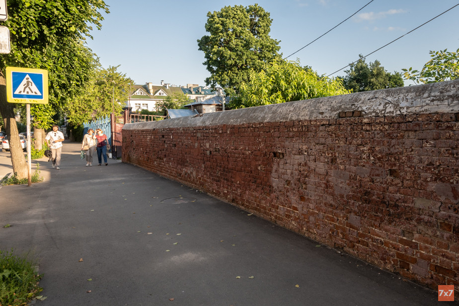 — И я ходил мимо этого «забора» и не обращал на него внимания. Год назад заметил, что в нем заложены кирпичом не просто проемы, а окна. Но окон в заборах не бывает. В январе этого года на глаза попалась карта от 1821 года. И на ней в этом месте обозначено большое строение, одна стена которого была более 100 метров в длину. То есть это не забор, а сохранившаяся стена здания, — предположил краевед.