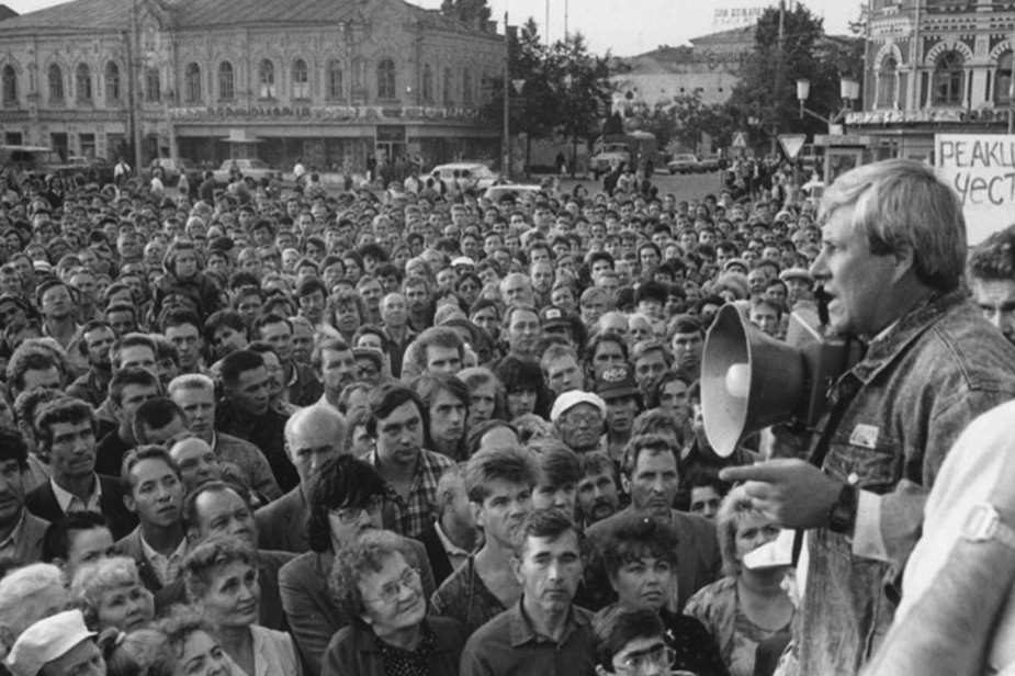 - Когда я подошел, в этом кузове мыкался председатель облисполкома Анатолий Ковлягин. Он подходил к микрофону, народ кричал: «Долой! Иди отсюда!» Он отходил, потом подходил снова, и народ опять кричал ему: «Вон отсюдова!» Но в целом Пенза вела себя спокойно и демонстрировала пассивное ожидание перемен. Народ ждал, что новая власть даст колбасу по два [рубля] двадцать [копеек], водку и сигареты. Люди поднялись прежде всего из-за того, что нечего было жрать. Было совершенно очевидно, что это переворот в верхах, который не имеет никакого отношения к воле народа. Я так думал еще и потому, что в феврале 1991 года участвовал в митинге против засилья КПСС на Манежной площади, куда вышло больше миллиона человек.