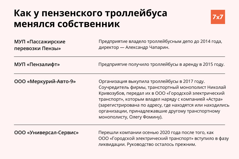 — Приоритеты чиновников поменялись только после того, как активами завладели «нужные люди», — говорит Финогеев. — В феврале 2020 года они срочно выделили из бюджета 10 миллионов рублей, переделали концепцию развития общественного транспорта и пришли к выводу, что Пенза может обойтись без троллейбусов. Эта идея продвигалась при активной поддержке сетевого издания «Пенза-Взгляд», за которым также стоит Олег Фомин.