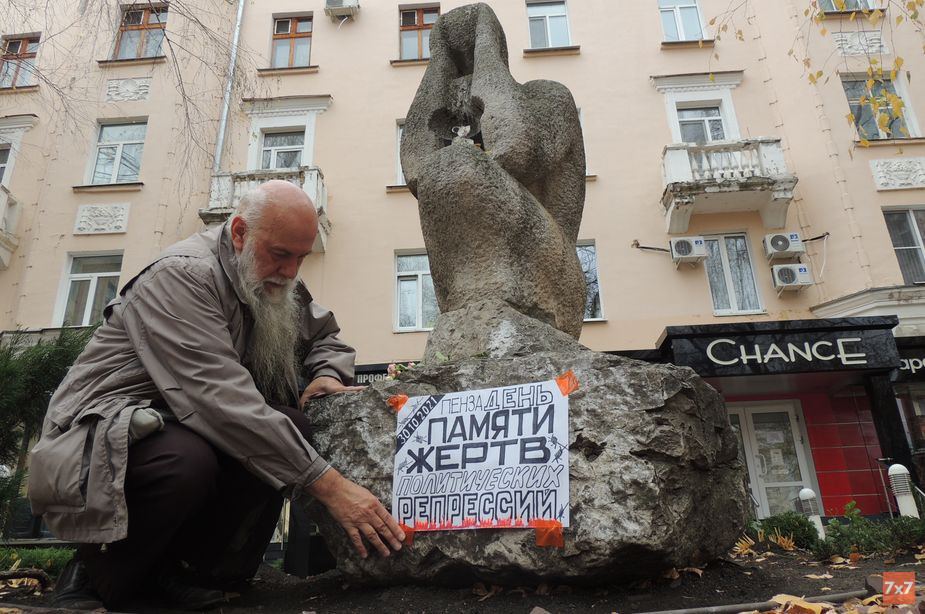 В Пензе акция памяти жертв политических репрессий по традиции прошла у памятника «Покаяние» на улице Московской. В этот раз в ней поучаствовали всего два человека: правозащитник Юрий Вобликов принес цветы и плакат, жительница Пензы Линина Иванова — свечи.