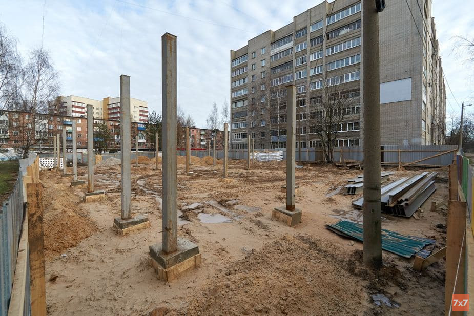 Увидев технику под окнами, ярославцы вышли на пикеты. В ответ строители огородили площадку забором из профнастила, разметили колышками и веревками очертания фундамента.