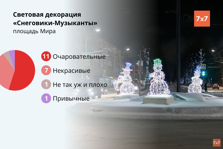 Традиционно новогодние украшения власти обсуждают осенью, тогда же формируют бюджет на них. Инсталляции, которые они купили ранее, чиновники перемещают по городу, чтобы каждый год они стояли в разных местах. Так, «Снеговики-музыканты» располагались на Красной площади и на Октябрьской площади, теперь они переехали на площадь Мира. Директор агентства по рекламе Ирина Марченко рассказала «7х7», что место выбирают в зависимости от потока людей и возможности подключения к электричеству.