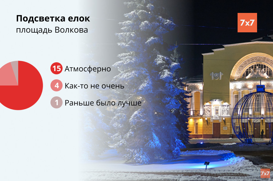 — Можно придумать отдельные решения для значимых объектов: Волковского театра, Знаменской башни, ТЮЗа, чтобы они подчеркивали красоту зданий. Нужно украсить их елками, правильно подсветить, — сказала она.
