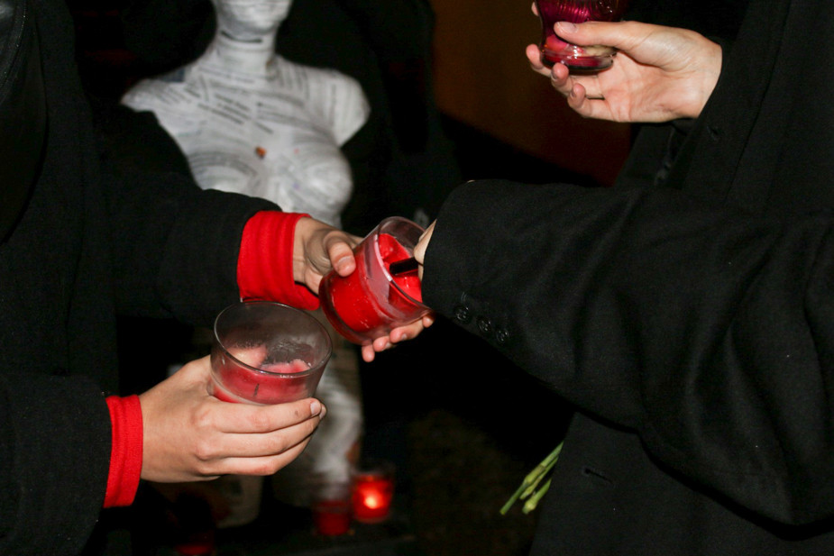 Марина: На завершающей акции в День прав человека мы снова использовали такой же манекен, как во время открытия. Первый манекен у нас отобрали в полиции, его так и не вернули. Это не было запланировано, но когда мы стали думать, как закрыть цикл, мы решили воспользоваться советом судьи, которая назначила нам штрафы.