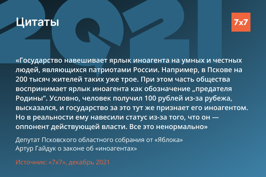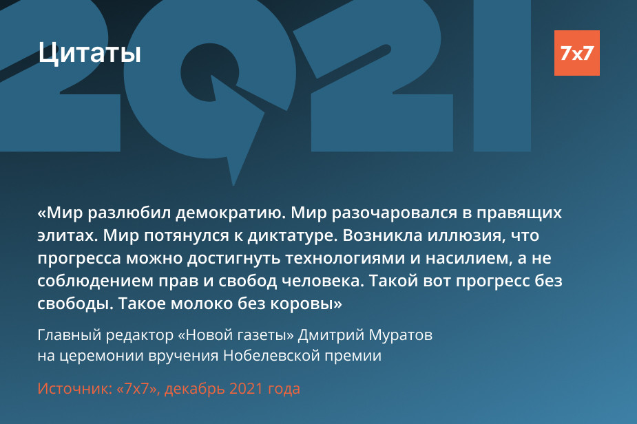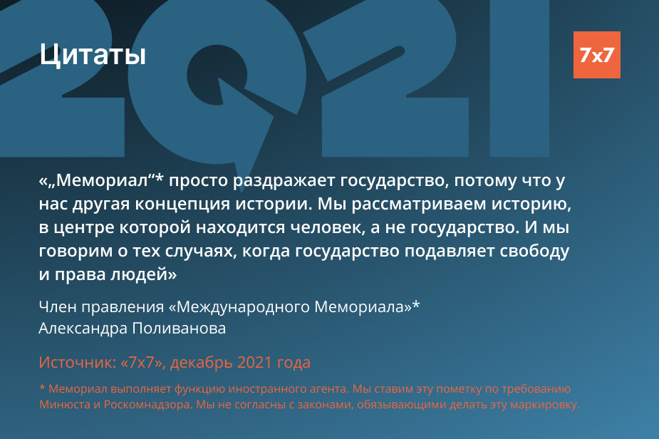 Помните ли вы, как начинался 2021 год и как он отразился на жизни гражданского общества? А что последовало после? Мы помним, потому что журналисты вынуждены следить за повесткой, изучать мнения экспертов по каждому громкому поводу. Этим мы и занимались в течение минувшего года. В этой подборке не будет формального перечисления событий, а только яркие цитаты общественников, журналистов и политиков о том, как они восприняли то, что случилось в России в 2021-м.