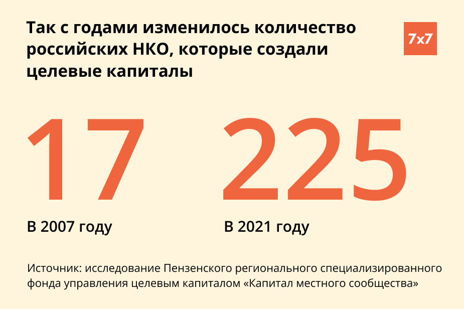 Некоммерческий сектор в России постепенно осваивает инструмент целевых капиталов, или эндаументов. Они приносят пассивный доход и гарантируют подушку безопасности. «Российские НКО разглядели мировые тренды и выгоду от длинных денег», — считает генеральный директор пензенского фонда управления целевым капиталом «Капитал местного сообщества» Олег Шарипков. Фонд презентовал 25 января обновленную базу данных НКО, создавших целевой капитал. Корреспондент «7х7» изучил эту аналитику и выяснил, почему региональным НКО стоит создавать эндаументы.