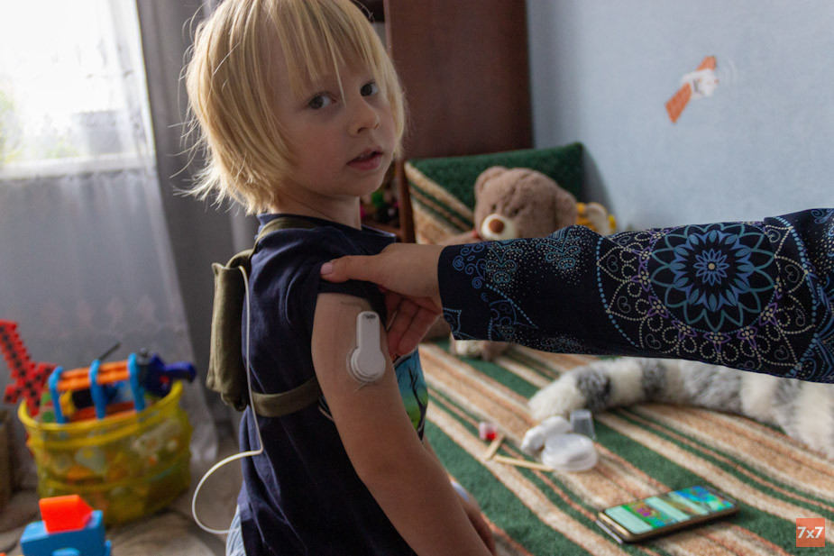 Андрей бежит к качелям по детской площадке во дворе девятиэтажки. Просит маму покачать его посильнее. Она соглашается. Мальчик улыбается и с удовольствием позирует для фото. Через пару минут ему надоедает: «Все, пошли домой». Дома его ждет очередной замер крови с помощью глюкометра. К прокалыванию пальца мальчик равнодушен — ему интереснее показать гостю игрушки, чем переживать из-за укола. Глюкометр показывает уровень сахара: 10 ммоль/л. Это верхняя граница нормы для диабетиков. Нижняя — четыре. Андрей берет планшет и садится смотреть мультики.