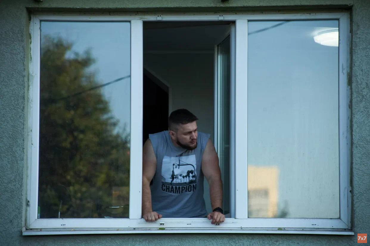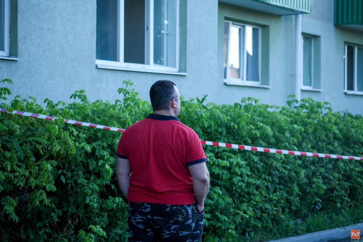 По двору ходят полицейские и сотрудники МЧС, пока рабочие — на них нет специальной формы — с громким лязгом бросают в мусорный контейнер стекла. Из подъезда одного из поврежденных многоквартирных домов выходят двое мужчин, на одном — синяя жилетка спасательной службы, в руках у другого — блокнот.