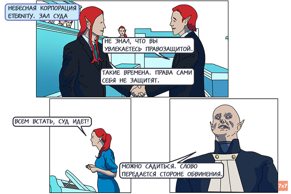 Обычно в конце месяца департаменты Добра и Зла небесной корпорации Eternity делают доклады о событиях на Земле, чтобы вычислить уровень равновесия между сторонами. Но в этот раз главная новость корпорации — суд над сотрудницей Департамента Добра Анджелой. Его инициировал секретарь Хорус, который хочет изменить устройство Земли: насильно разделить Добро и Зло в рамках планеты, не оставив людям возможности самим решать свою судьбу.