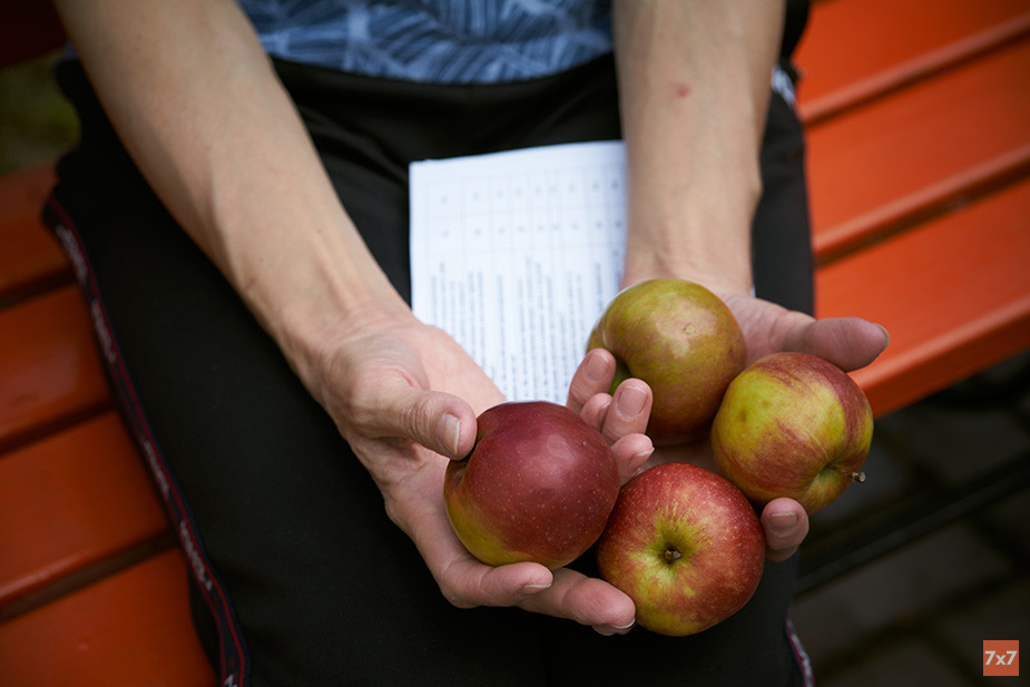 На аллее перед столовой новые лица: большинство из тех, кто сидел здесь на лавочках 10 минут назад, уже пошли на обед. Теперь с обеда возвращаются. На лавочке сидит женщина с яблоками в руках. Ее зовут Светлана.