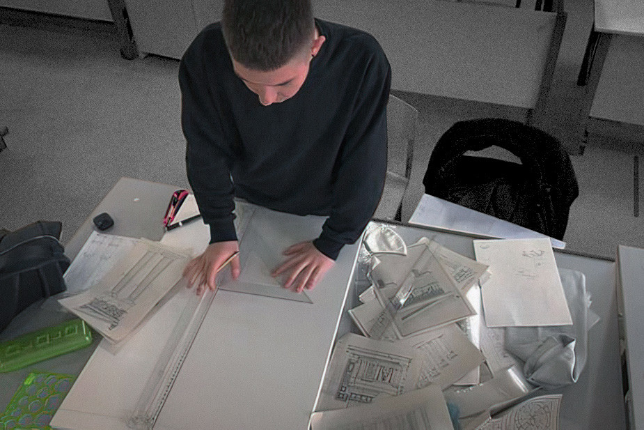 Некоторые экзамены на факультете архитектуры и дизайна КубГУ проходят не в классической форме. Студенты приходят в девять утра и до четырех чертят план объекта. Как раз на таком экзамене находился Максим 21 июня, через несколько дней после задержания и составления протоколов. Он сосредоточенно чертил дом средней этажности — уже справился с разрезом и генпланом и перешел к заключительному этапу — перспективе.