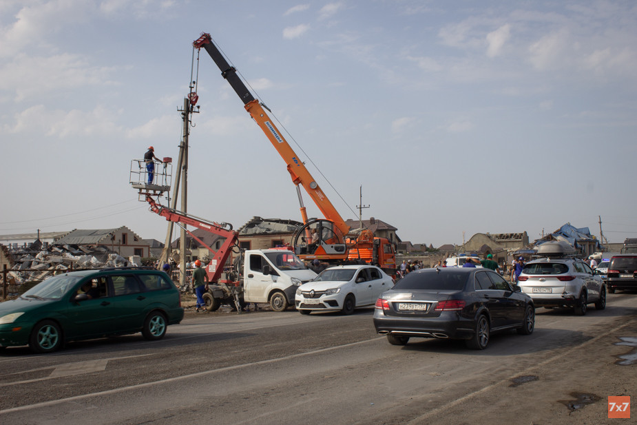 Утром 15 августа дорога в районе взрыва была оцеплена — спасатели разгребали горы обломков. Федеральное шоссе, по которому местные и туристы едут на море в микрорайон Караман, два дня гудело от сигналов машин МВД и ППС.