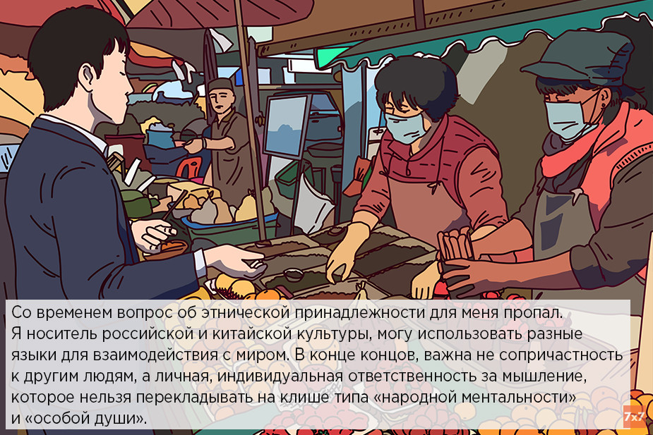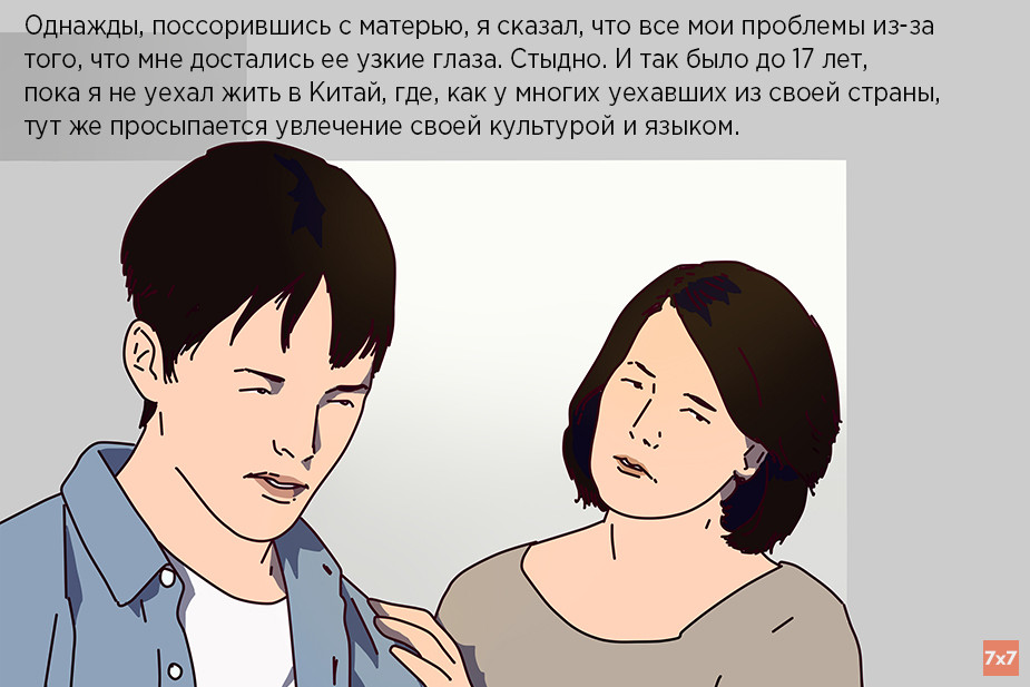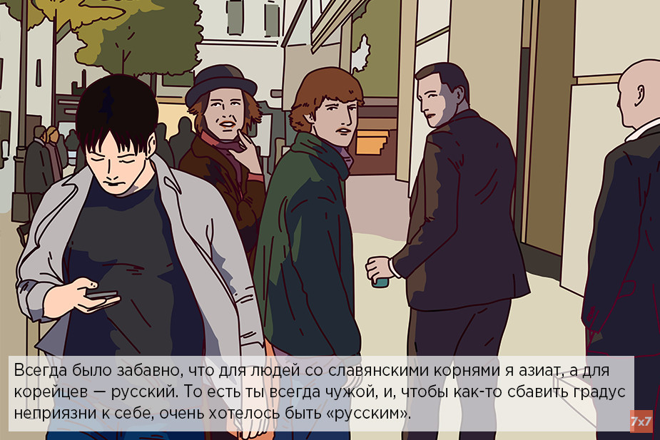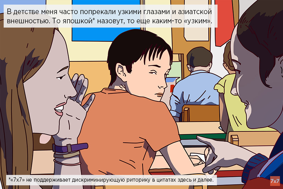 Внутри проекта есть форма обратной связи для тех, кто хотел бы рассказать о личном опыте столкновения с ксенофобной российской действительностью. В этой публикации мы графически представляем историю, которой поделился Кирилл (визуализация — художественное решение «7х7» на основе его письма).